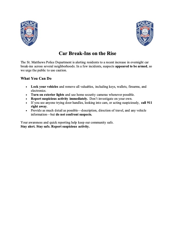 Please read this message from St. Matthews Police on how to stay safe.